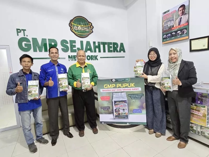 Riau12.com-PEKANBARU- PT Geo Mulia Perkasa Sejahtera (GMP) memperkenalkan pupuk hayati dengan merek dagang GMP Pupuk Daur Ulang kepada masyarakat petani sawit di Riau dan Sumatera.