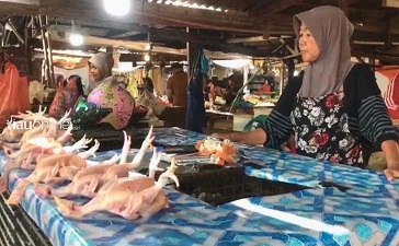 “Omzet turun sekitar 20 persen. Sekarang pembeli juga sepi, kebanyakan hanya beli ayam yang sudah dipotong setengah kilo, supaya lebih hemat,” ujar Sri Arisma, salah seorang pedagang ayam di Pasar Cik Puan.