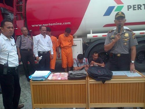 Senin, 12-10-2015 - 16:01:00 WIB PEKANBARU, Riau12.com-Sebulan diburu sejak 8 September bulan lalu, Polsek Lima Puluh akhirnya sukses mengungkap komplotan mafia penyelewengan 16 ton solar bersubsidi dari Depot Pertamina PT Elnusa Petrofin Pekanbaru. Empat tersangka dibekuk di dua lokasi berbeda, tiga ditangkap di Payakumbuh, Sumatera Barat sedangkan seorang lagi dibekuk petugas...(read more)