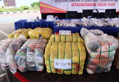 Kamis, 11-01-2024 - 14:51:47 WIB Riau12.com -PEKANBARU- Ratusan karung pakaian dan sepatu bekas ilegal yang berasal dari luar negeri dan masuk ke bumi melayu lancang kuning berhasil diamankan oleh Ditreskrimsus Polda Riau.Dirreskrimsus Polda Riau, Kombes Pol Nasriadi mengatakan dari pengungkapan itu, petugas berhasil mengamankan dua pelaku, yakni seorang sopir dan penghubung yang...(read more)