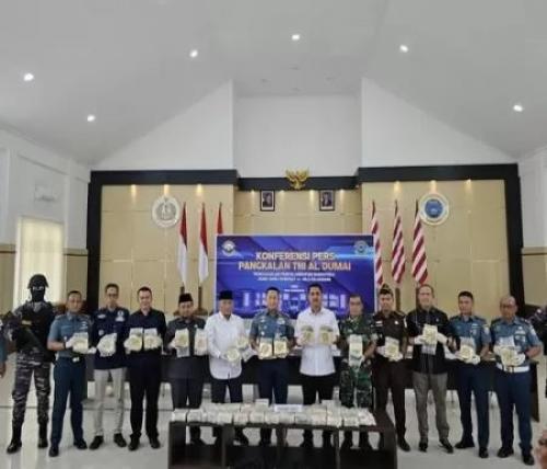 Selasa, 10-06-2025 - 15:13:02 WIB Riau12.com-DUMAI - TNI Angkatan Laut, melalui Tim Fleet One Quick Response (F1QR) Pangkalan TNI AL (Lanal) Dumai, berhasil menggagalkan upaya penyelundupan narkotika jenis sabu seberat 48,54 kilogram dari jaringan internasional asal Malaysia.Barang bukti bernilai estimasi Rp72,81 miliar tersebut ditemukan dalam dua tas ransel hitam yang dibuang...(read more)