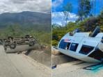 Berdasarkan video yang diterima Tribunpekanbaru.com, minibus berwarna putih dengan nomor polisi KH 1286 FO itu tampak terbalik di pinggir jalan dengan posisi roda menghadap ke atas. Bagian badan mobil melintang di sisi jalan, sementara kaca-kaca kendaraan terlihat pecah dan berserakan di lokasi kejadian.