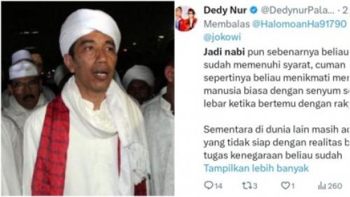 Rabu, 11-06-2025 - 10:10:59 WIB Riau12.com-JAKARTA – Pernyataan kader Partai Solidaritas Indonesia (PSI), Dedy Nur Palakka yang mencuit Presiden ke-7 RI, Joko Widodo (Jokowi), sudah memenuhi syarat sebagai seorang nabi, menuai kontroversi luas di media sosial.Pegiat media sosial, Jhon Sitorus, menjadi salah satu yang mengkritik keras pernyataan tersebut. Ia menilai Dedy...(read more)