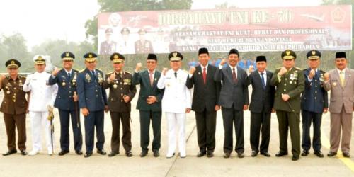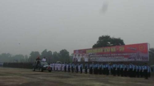 Senin, 05-10-2015 - 11:06:17 WIB PEKANBARU, Riau12.com - Ratusan prajurit Tentara Nasional Indonesia (TNI), menggelar upacara peringatan HUT TNI ke-70, di Main Aphrone Pangkalan Udara (Lanud) Roesmin Nurjadin Pekanbaru, Riau, Senin (5/10/2015). Upacara ini dilangsungkan di bawah pekatnya asap yang melanda kota bertuah, dan dipimpin lagsung oleh Plt Gubernur, Arsyadjuliandi...(read more)