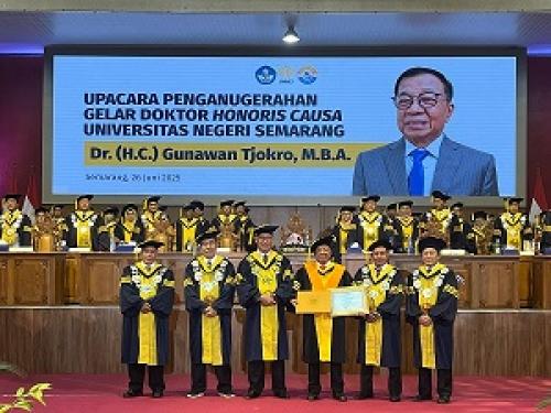 Jumat, 27-06-2025 - 11:52:53 WIB Riau12.com-SEMARANG – Rektor Universitas Negeri Semarang (UNNES) Prof. Dr. S Martono, M.Si., menganugerahkan gelar Doktor Kehormatan, Doktor Honoris Causa (DR HC) kepada Gunawan Tjokro, MBA pada cara yang berlangsung di Gedung Prof. Wuryanto (Almarhum) Kampus Unnes Sekaran, Gunungpati, Jawa Tengah, Kamis (26/6/2025).Gunawan Tjokro memperoleh...(read more)
