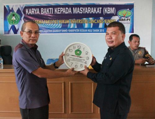 Selasa, 03-11-2015 - 14:42:08 WIB PEKANBARU, Riau12.com - Fakultas Hukum (FH) Universitas Lancang Kuning (UNILAK) kembali melaksanakan program Karya Bakti kepada Masyarakat. Kali ini kegiatan Karya Bakti kepada Masyarakat di laksanakan di Kecamatan Rambah Samo Kabupaten Rokan Hulu (Rohul). Kamis (29/10) kemaren di Aula Kantor Camat Rambah Samo. Kegiatan Karya...(read more)
