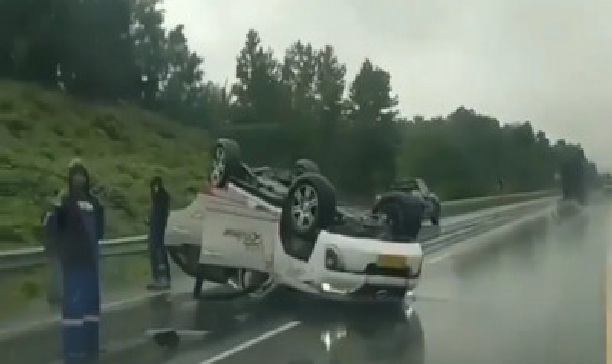 Kemudian kendaraan oleng kekanan sehingga kendaraan terbalik. Posisi akhir kendaraan berada di lajur lambat. Dalam kecelakaan ini tidak terdapat korban jiwa maupun luka. Selan sopir terdapat lima penumpang.