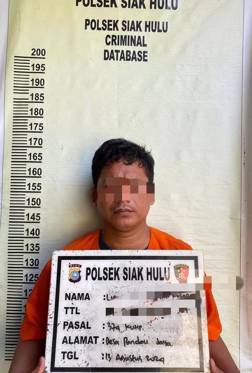 Riau12.com-SIAKHULU- Jajaran Polsek Siak Hulu berhasil menangkap pelaku penggelapan dalam jabatan di PT Anugrah Karya Aslindo (AKS) di Jalan Raya Pasir Putih, Desa Baru, Kecamatan Siak Hulu, Kabupaten Kampar, Senin (12/8/2024) sekitar pukul 16.00 WIB.