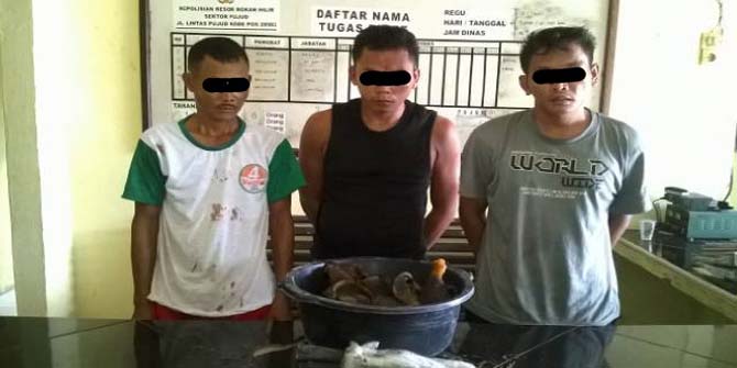 PUJUD,Riau12.com-Tiga pelaku pencurian hewan ternak di Tanjung Medan ditangkap Tim Opnal Polsek Pujud. Pelaku dikenali warga dan akhirnya penadah juga diketahui, namun menjadi buron.