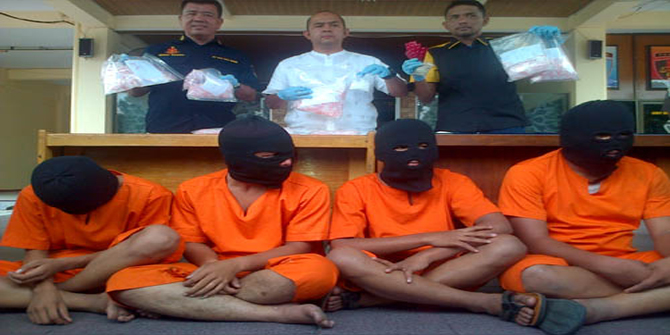Empat tersangka pengedar sabu-sabu yang diciduk polisi di
