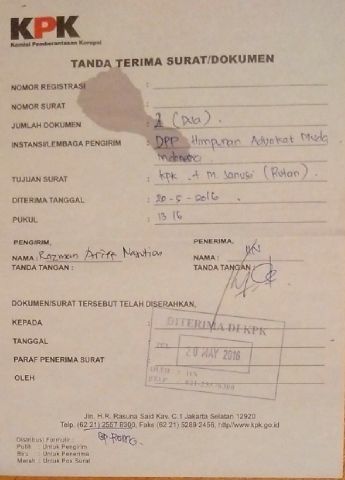 Dalam proses pembelaannya itu, KM diduga telah memakai alamat DPP HAMI sebagai alamat kantor dalam melakukan surat menyurat. Razman Nasution selaku Waketum bersama Yunus Sekjen tadi siang jam 14.00 Prescon di KPK, di katakannya ketika alamat yang digunakan Pengacara M. Sanusi itu palsu, maka segala bentuk Pembelaannya selama menangani Perkara tidak sah. Pihaknya meminta M. Sanusi mengganti Pengacaranya karena sudah menodai Kepercayaan Kliennya dengan menggunakan alamat DPP HAMI Bersatu.(rdw)