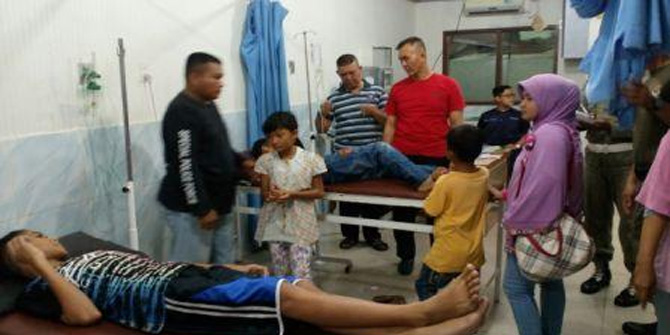 Riau12.com-PEKANBARU-Sial, 19 orang anggota Satuan Brigade Mobil (Brimob) Kepolisian Daerah (Polda) Riau dilarikan ke Rumah Sakit Bhayangkara, Jalan Kartini, Pekanbaru karena keracunan makanan. Tak hanya anggota polisi yang keracunan, empat orang warga sipil ikut menjadi korban, tiga di antaranya adalah anak-anak.
