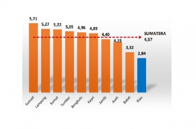 Jika dilihat dari pertumbuhan PDRB Regional Sumatera Tahun 2019(c-to-c), kata Misfaruddin, ternyata Riau berada diposisi paling 'bontot'. Yang mana, provinsi dengan pertumbuhan ekonomi tertinggi di Sumatera adalah Provinsi Sumatera Selatan (Sumsel) dengan pertumbuhan sebesar 5,71 persen.