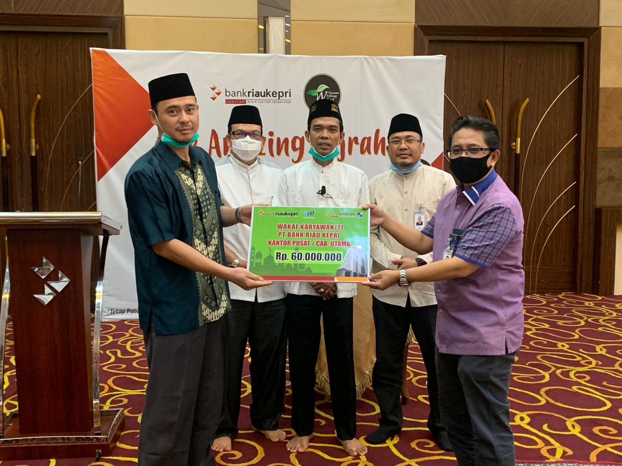 Riau12.com, PEKANBARU-Di tengah perjuangan konversi Bank Riau Kepri menuju bank Riau Kepri Syariah, UAS datang mensosialisasikan Yayasan Tabung Wakaf Umat (YTWU) dan memberikan pencerahan dengan tajuk "The Amazing Hijrah; Membangun Peradaban Dengan Hidup Bersyariah" di Ballroom Menara Dang Merdu Bank Riau Kepri Jalan Sudirman Pekanbaru Kamis (23/7/20).