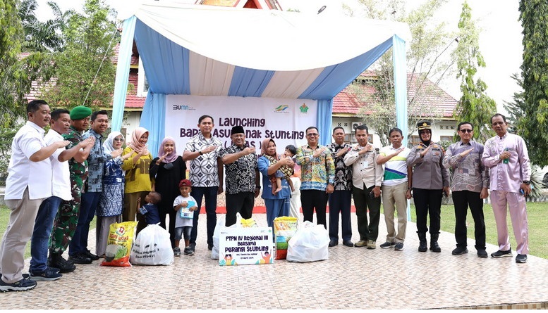 Program yang kemudian menasbihkan PTPN IV Regional III sebagai Bapak Asuh Anak Stunting tersebut dihadiri langsung Penjabat Sekretaris Daerah Kampar Drs Yusri didampingi unsur forum komunikasi pimpinan kepala daerah (Forkompinda) serta jajaran manajemen PalmCo Regional 3 di Komplek Perkantoran Camat Tapung, Kabupaten Kampar, Riau, Jumat (01/03/24).