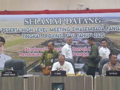 Capaian tersebut terungkap dalam High Level Meeting Swasembada Pangan yang digelar di Gedung Daerah, Rabu (16/4/2025). Pelaksana Tugas Kepala Dinas Tanaman Pangan, Hortikultura dan Perkebunan (PTPH) Riau, M. Job Kurniawan, menyebut IP lahan program Oplah meningkat dari di bawah IP-1 menjadi IP-2,39 di lahan seluas 3.336 hektare.