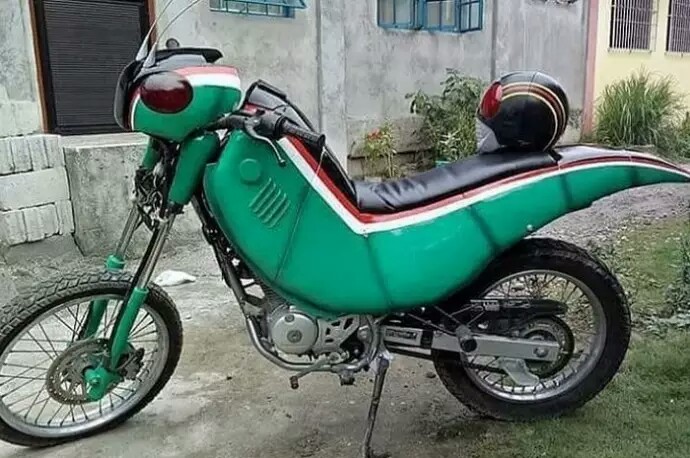 Belalang tempur yang dikelir warna hijau memiliki basic Suzuki RA125.