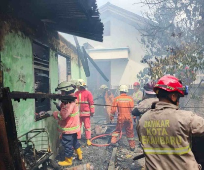 Kebakaran Dua Rumah Petak di Marpoyan Damai, Satu Sepeda Motor Hangus dan Kerugian Rp400 Juta