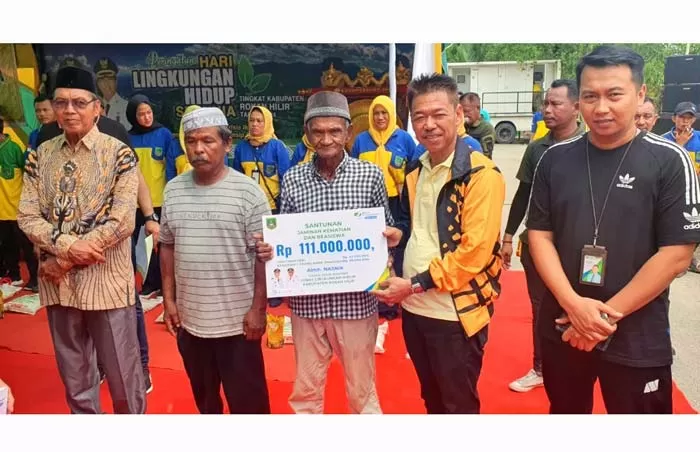 (Segmenberita)-BAGANSIAPIAPI - Sejumlah tenaga kebersihan di Dinas Lingkungan Hidup (DLH) Rokan Hilir menerima klaim dari BPJS Ketenagakerjaan Rohil. Di mana penyerahan klaim kepada penerima/waris dari peserta BPJS Kesehatan yang telah wafat, digelar di sela kegiatan Hari Lingkungan Hidup Sedunia (HLHS) di Bagansiapiapi, Kamis (27/6).
