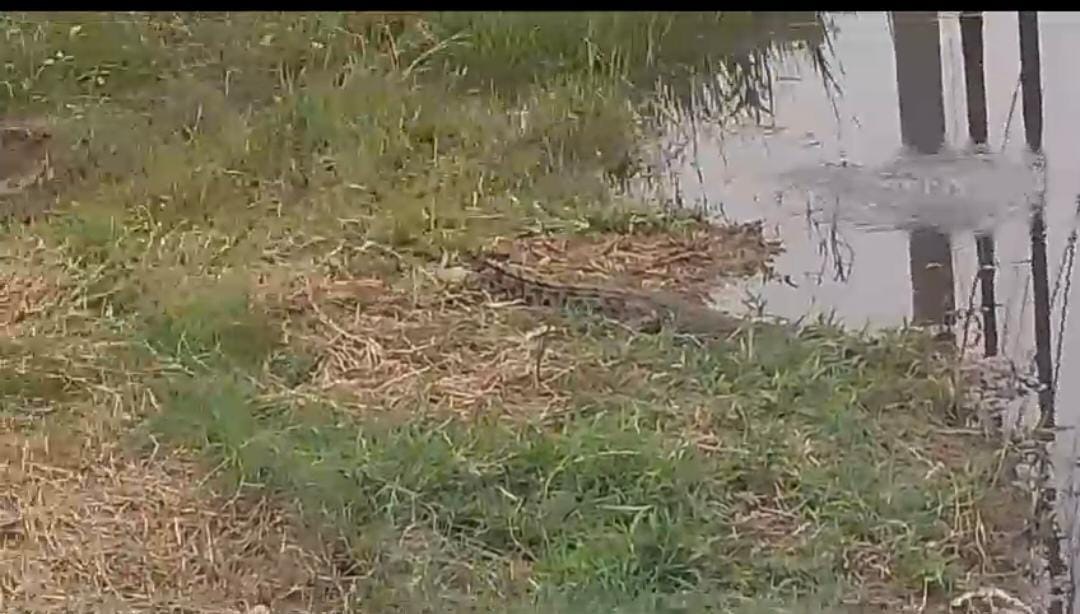 Ia menyebutkan kejadian penampakan buaya tersebut pada pagi hari. "Itu yang tadi pagi di depan, kecil dia, sepertinya anakan buaya," sebutnya.
