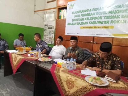 Riau12.com-BAGANSIAPIAPI – Badan Amil Zakat Nasional (Baznas) Kabupaten Rokan Hilir secara resmi menandatangani nota kesepahaman (MoU) dengan 37 kelompok peternak sapi binaan, Kamis (14/8/2025). Kegiatan ini digelar di Kantor Baznas Rohil, Jalan Pahlawan, Bagansiapiapi, dan menjadi bagian dari penguatan Program Rohil Makmur.