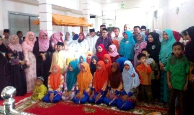 | Ketua DPRD Rohil Nasrudin Hasan dan anggota DPRD Rohil serta staf berfoto bersama dengan anak yatim selesai acara |