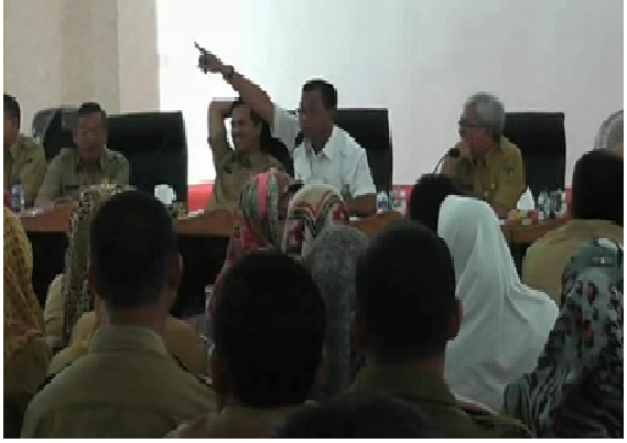 Teks : Suasana Rapat bersama SKPD dilantai 4 Kantor Bupati"Belanja bantuan sosial kemasyarakatan dan hibah harus memiliki kejelasan peruntukkan penggunaannya dalam bentuk kemitraan kegiatan sesuai dengan strategi akselerasi pembangunan partisipatif dan dikurangi jumlahnya," Ujar Bupati