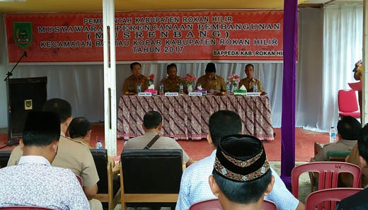 Riau12.com-BAGANSIAPIAPI-Secara resmi Wakil Bupati Rokan Hilir Drs. Djamiludin membuka Musrenbang Kecamatan Rantau Kopar, Senin (20/2/17). Adapun Musrenbang itu bertujuan mendapat masukan untuk penyusunan Rencana Kerja Perangkat Daerah (RKPD).