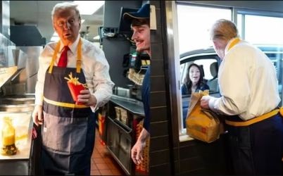 Sambil bercanda Trump mengatakan, ia memiliki waktu 15 menit lebih lama bekerja di McDonald's dibandingkan Harris.