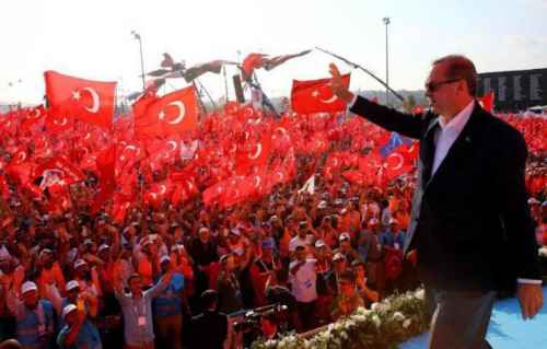 Membawa atribusi berupa bendera merah dihiasi bulan sabit dan bintang putih, mereke berkumpul di Yenikapi Square dan mendengarkan dengan seksama pidato berapi-api kepala negara mereka. Erdogan berjanji akan mengembalikan kebijakan hukuman mati ke negaranya, guna menindak para pelaku kudeta militer.