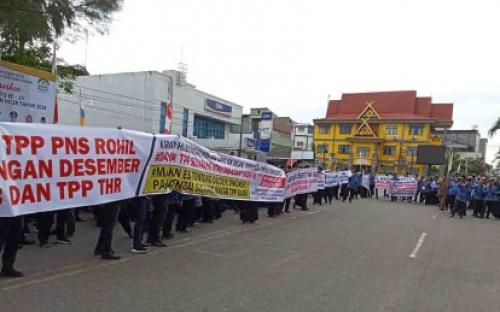 Selasa, 17-12-2024 - 15:32:37 WIB Riau12.com-BAGANSIAPIAPI – Ratusan Aparatur Sipil Negara (ASN), Pegawai Pemerintah dengan Perjanjian Kerja (PPPK), dan tenaga honorer di lingkungan Pemerintah Kabupaten Rokan Hilir (Pemkab Rohil), Riau menggelar aksi unjuk rasa pada Selasa (17/12/2024) usai upacara rutin 17 bulanan. Aksi ini berlangsung di depan Kantor Badan...(read more)