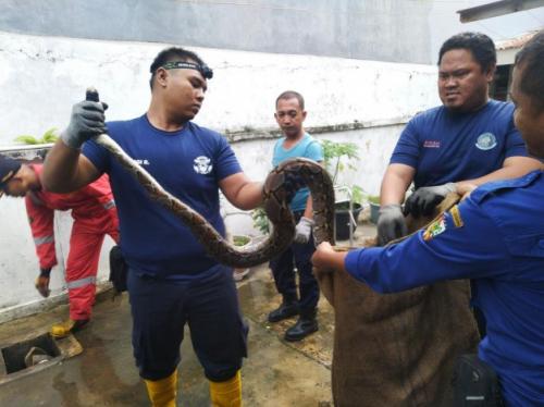 Senin, 07-12-2020 - 20:23:34 WIB PEKANBARU, RIAU12.COM - Tim Penyelamat Dinas Pemadam Kebakaran (Damkar) Kota Pekanbaru berhasil menangkap ular sepanjang 2,5 meter di pekarangan rumah warga di Jalan Sumatra, Kelurahan Simpang Empat, Kecamatan Pekanbaru Kota, Senin (7/12/2020).Komandan Regu Rescue Damkar Pekanbaru, Rahmat mengatakan, penangkapan ular jenis sanca itu berawal dari...(read more)