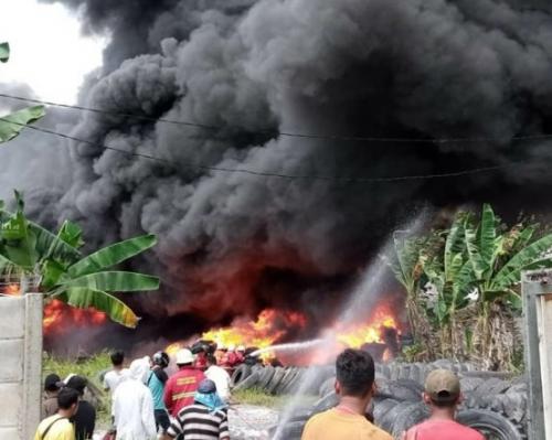 Selasa, 18-08-2020 - 16:12:34 WIB Riau12.com, PEKANBARU - Pabrik pengolahan ban bekas, CV Jaya Sanjaya di Jalan Pemuda Ujung, Kelurahan Tampan, Kecamatan Payung Sekaki, Pekanbaru, Riau, terbakar, Selasa (18/8/2020).Kepulan asap hitam pekat mulai terlihat membumbung ke udara pukul 09.00 WIB.Belum diketahui penyebab ban-ban bekas tersebut terbakar. Namun, warga yang berada di dekat...(read more)