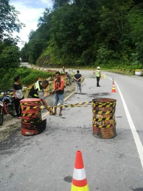 Selasa, 17-11-2015 - 17:51:29 WIB KUOK, Riau12.com-Tingginya curah hujan beberapa hari ini mengakibatkan terjadi longsor pada bahu jalan di Km. 77/78 desa Merangin kecamatan Kuok Kabupaten Kampar Selasa (17/11/15) pukul 05.00 wib.Beberapa saat setelah kejadian longsor di bahu jalan lintas Riau-Sumber ini, Kapolsek Bangkinang Barat Iptu Wan Mantazakka langsung meninjau lokasi...(read more)